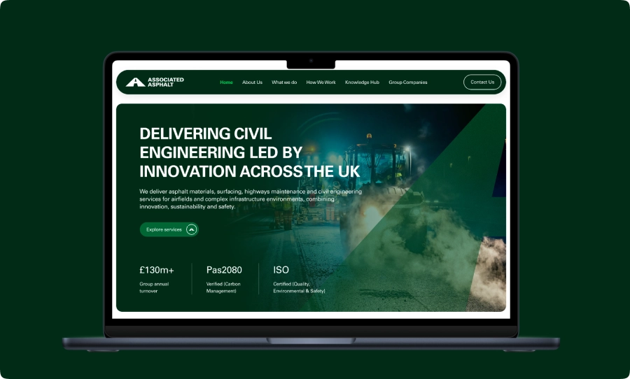 The new platform has been developed to more accurately reflect how the organisation operates in practice. Rather than presenting services in isolation, the website is structured around delivery environments, ways of working and performance outcomes, mirroring how infrastructure projects are planned, governed and delivered.