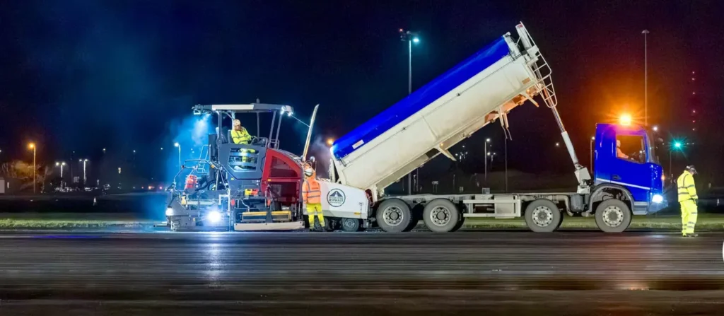 High-precision planing and asphalt or concrete surfacing works, including grooving and specialist surface treatments for airfields and access roads.
